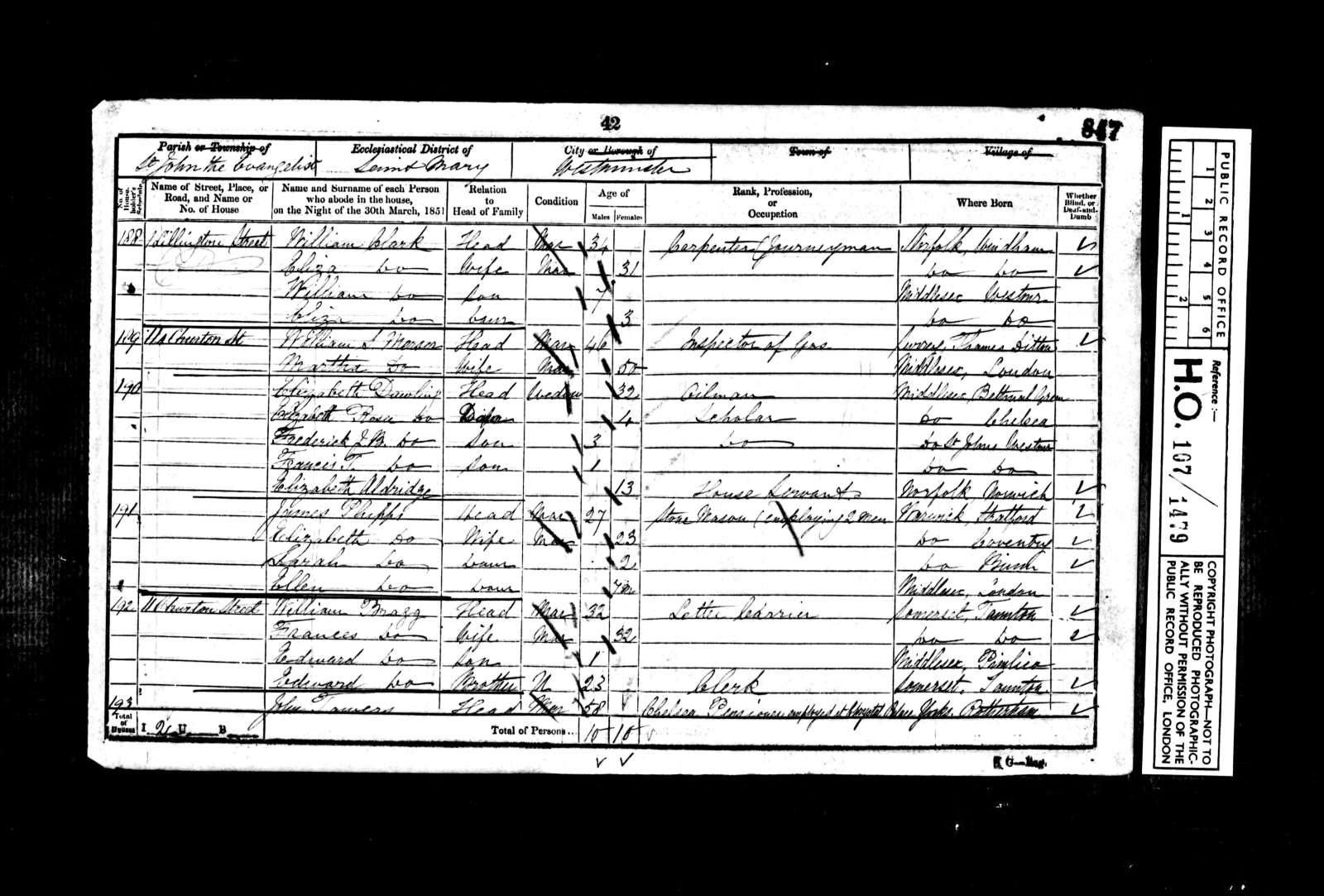 30 March 1851 | Westminster, London, EnglandG Detail: 11? Churton Street, St John the Evangelist, St Mary's.