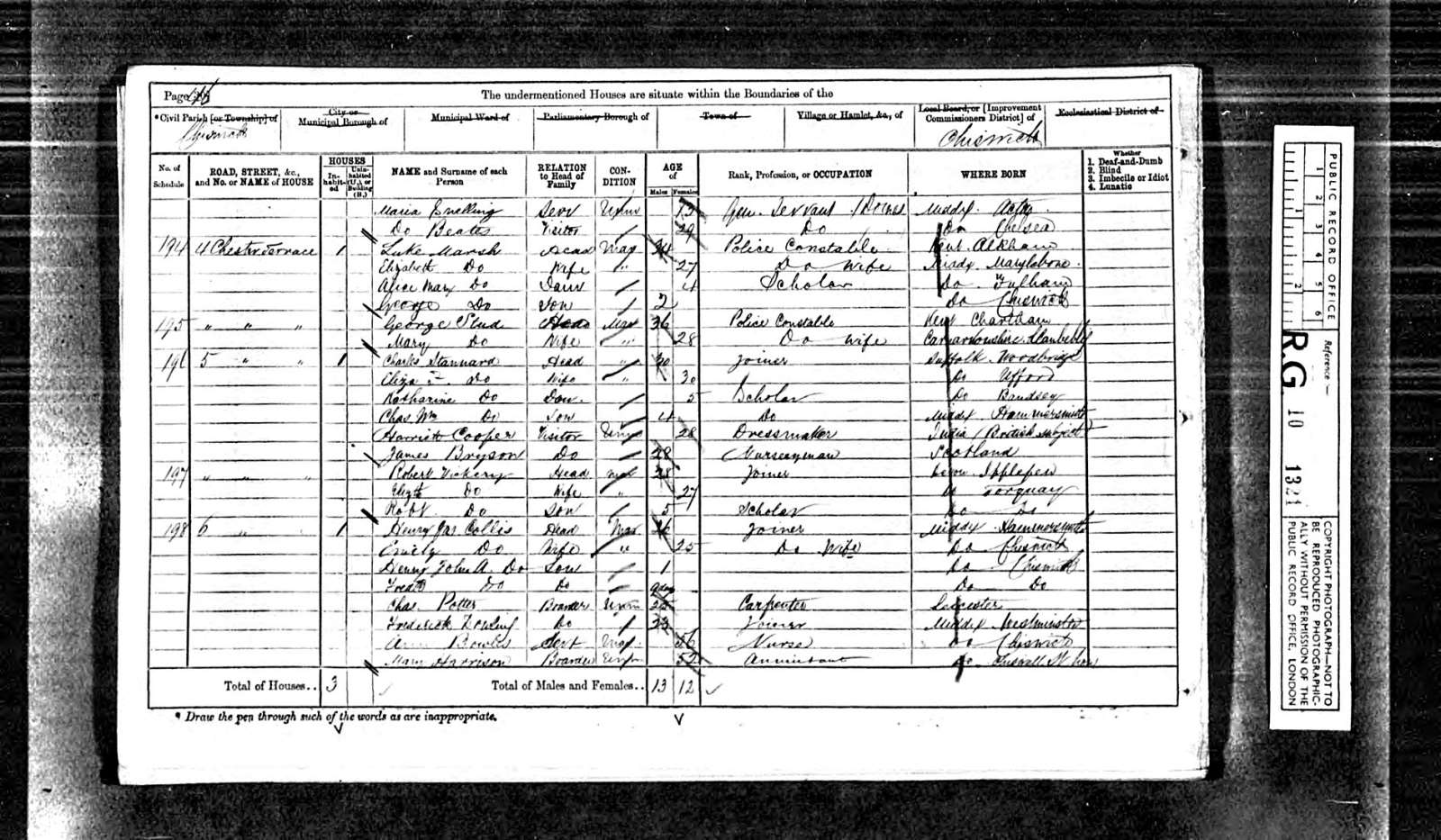 Enumerated on the census as 6 Chester Terrace as boarder.