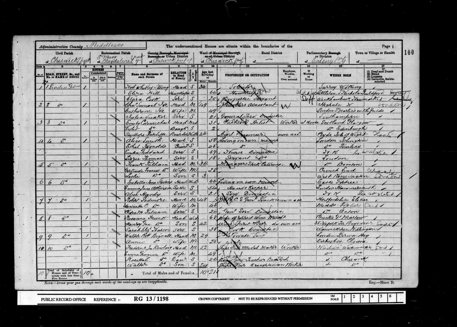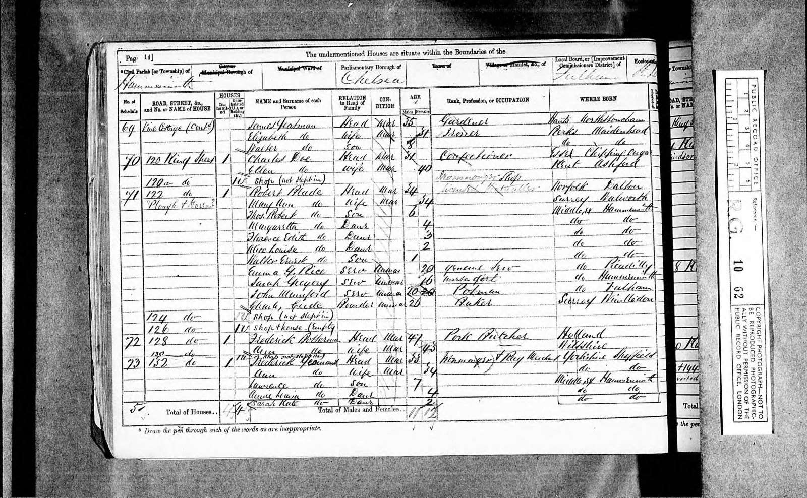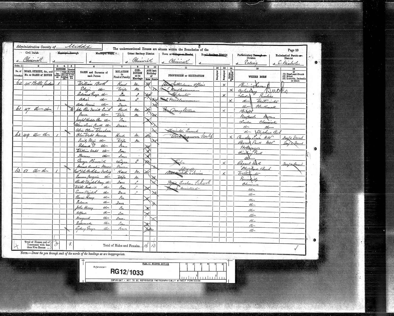 Enumerated on the census as 51 Bolton Gardens as head of household.