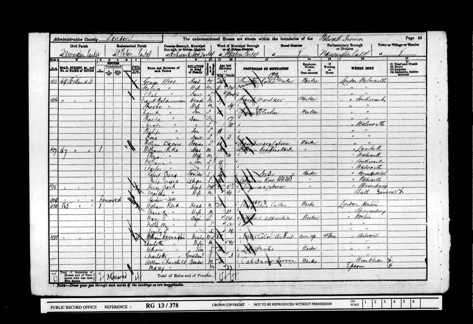 | Marriage | She and William Harrington were married on 19 October 1873 in Southwark, Emmanuel, Camberwell, England, Emmanuel Church of England; Both in 1st marriage; Witnesses: William Beaumont & Ellen Beaumont.1 |