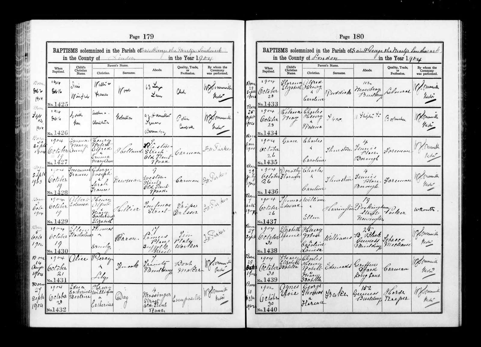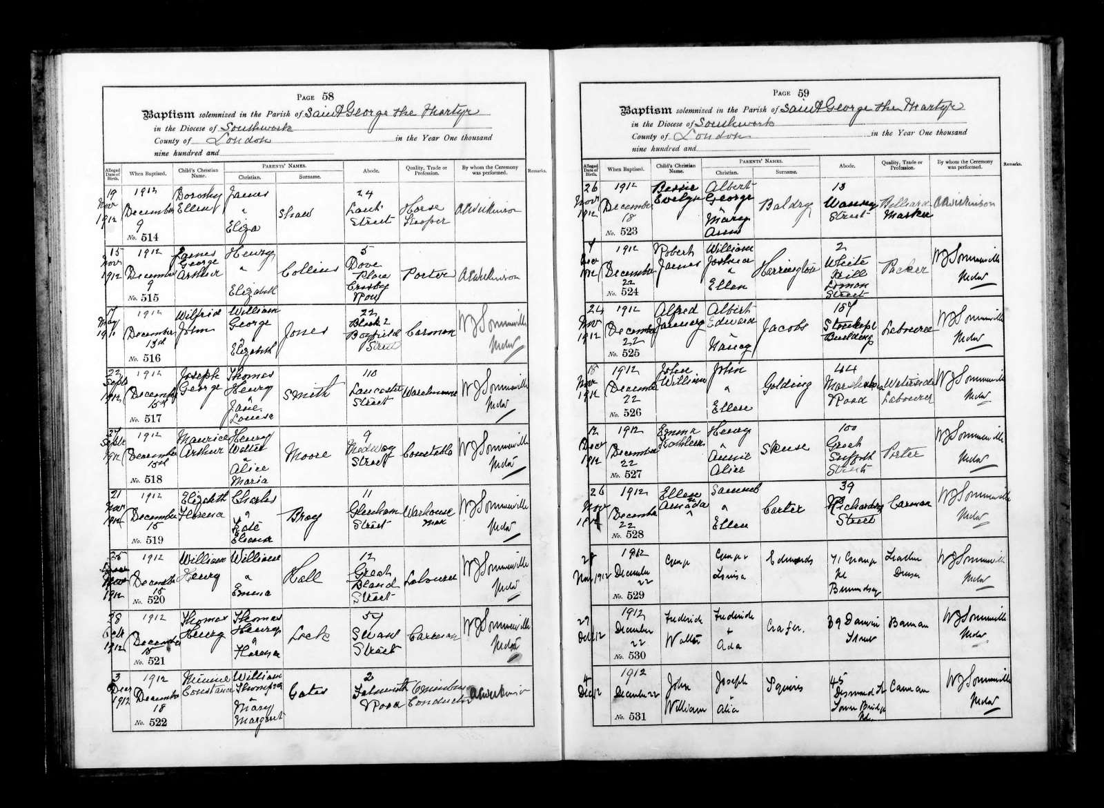 He was baptised on 22 December 1912 in Southwark, St George the Martyr, England.