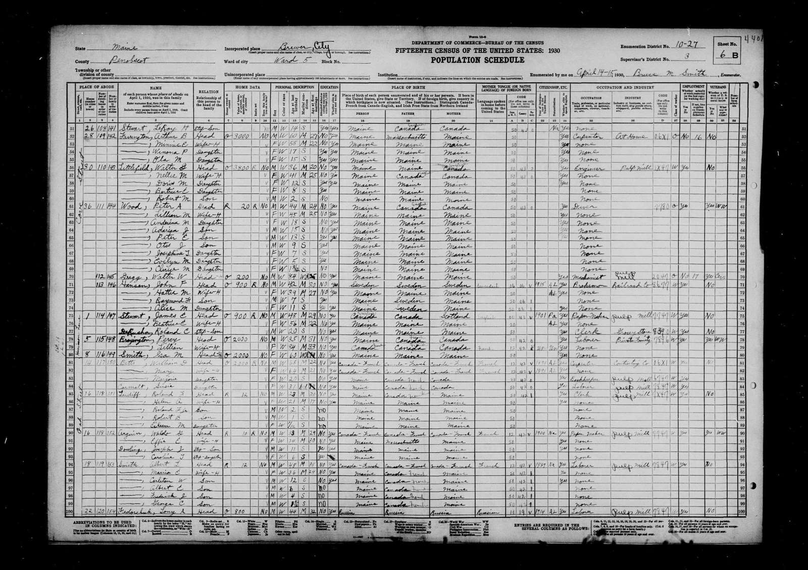 Citation Detail: Year: 1930; Census Place: Brewer, Penobscot, Maine; Page: 6B; Enumeration District: 0027,