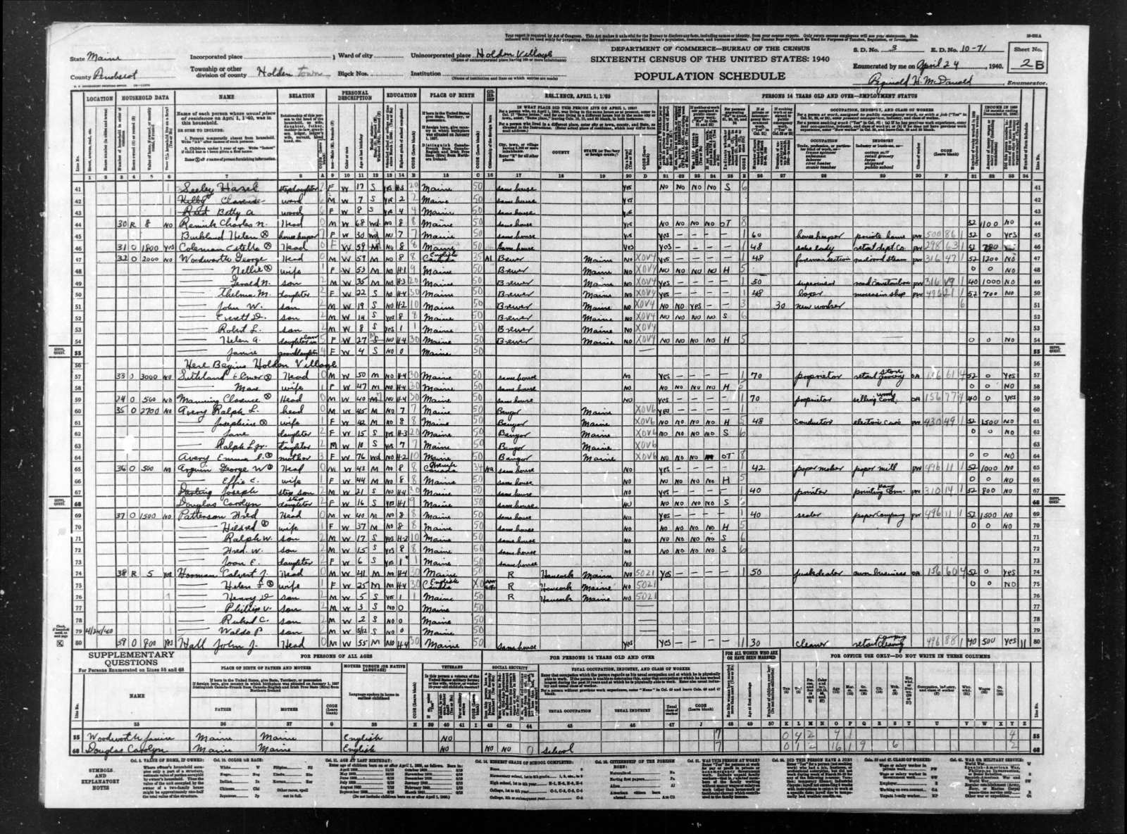 Year: 1940; Census Place: Holden, Penobscot, Maine; Roll: m-t0627-01487; Page: 2B; Enumeration District: 10-71