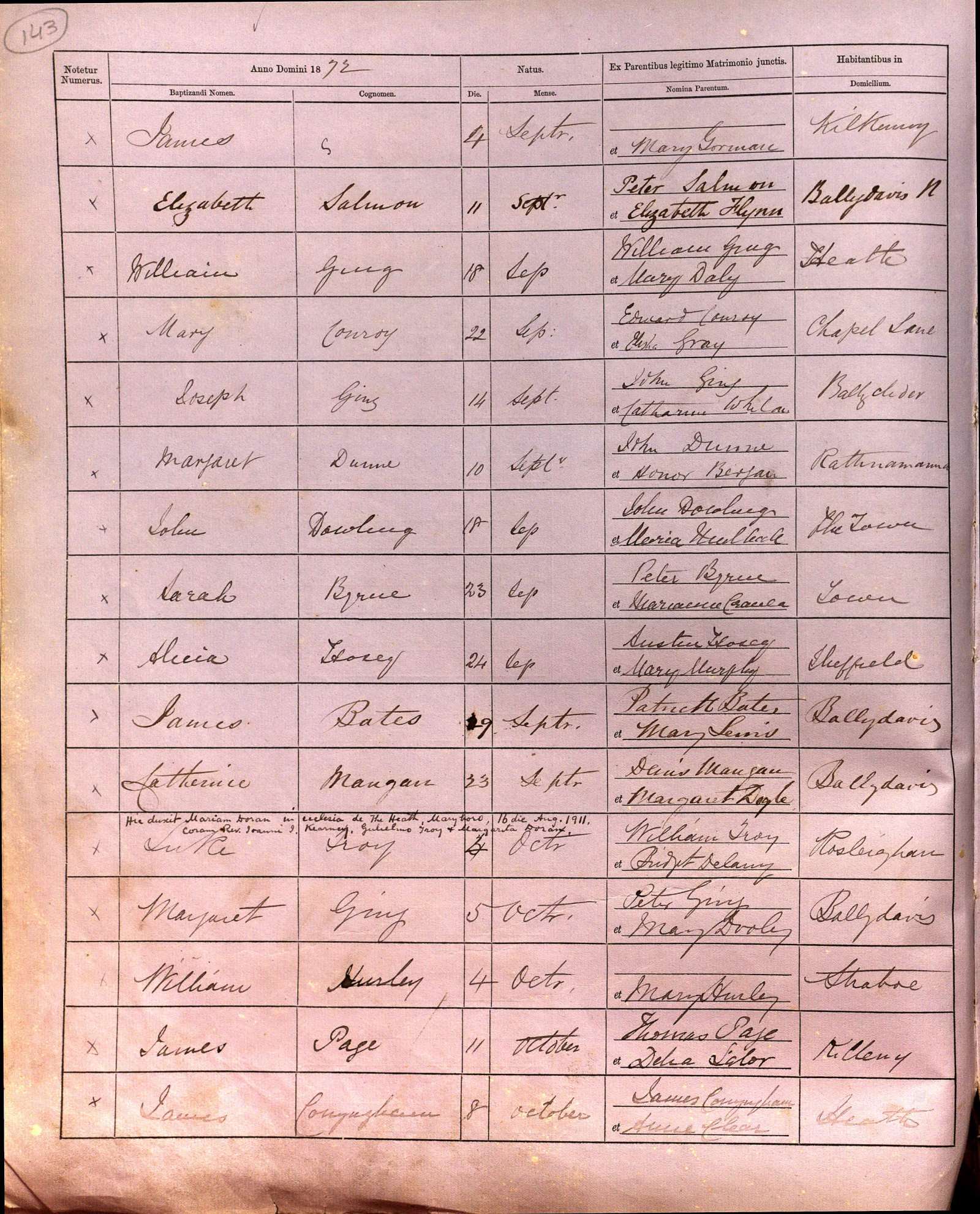Citation Detail: Catholic Parish Registers, The National Library of Ireland; Dublin, Ireland; Microfilm Number: Microfilm 08831 / 02,