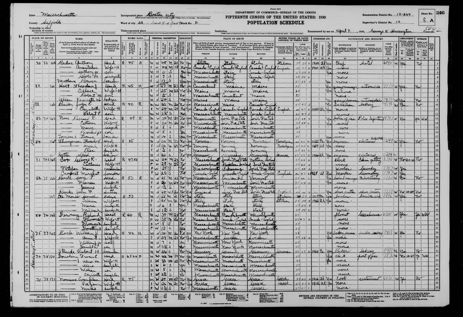 7 April 1930 | Boston, Suffolk, Massachusetts, USAG Enumerated on the census as Age: 5; Marital Status: Unmarried; Relation to Head: Son.