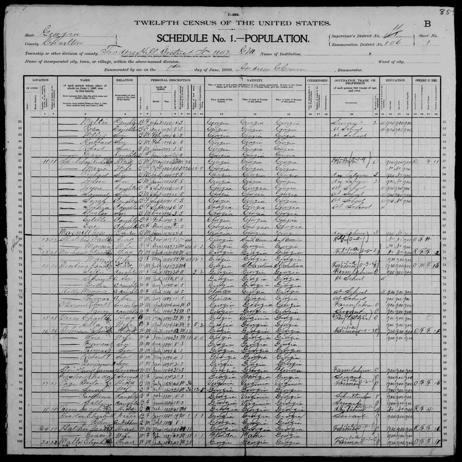 2 June 1900 | Folkston, Charlton, Georgia, USAG Detail: (14/14) Traders Hill District Number 1142.