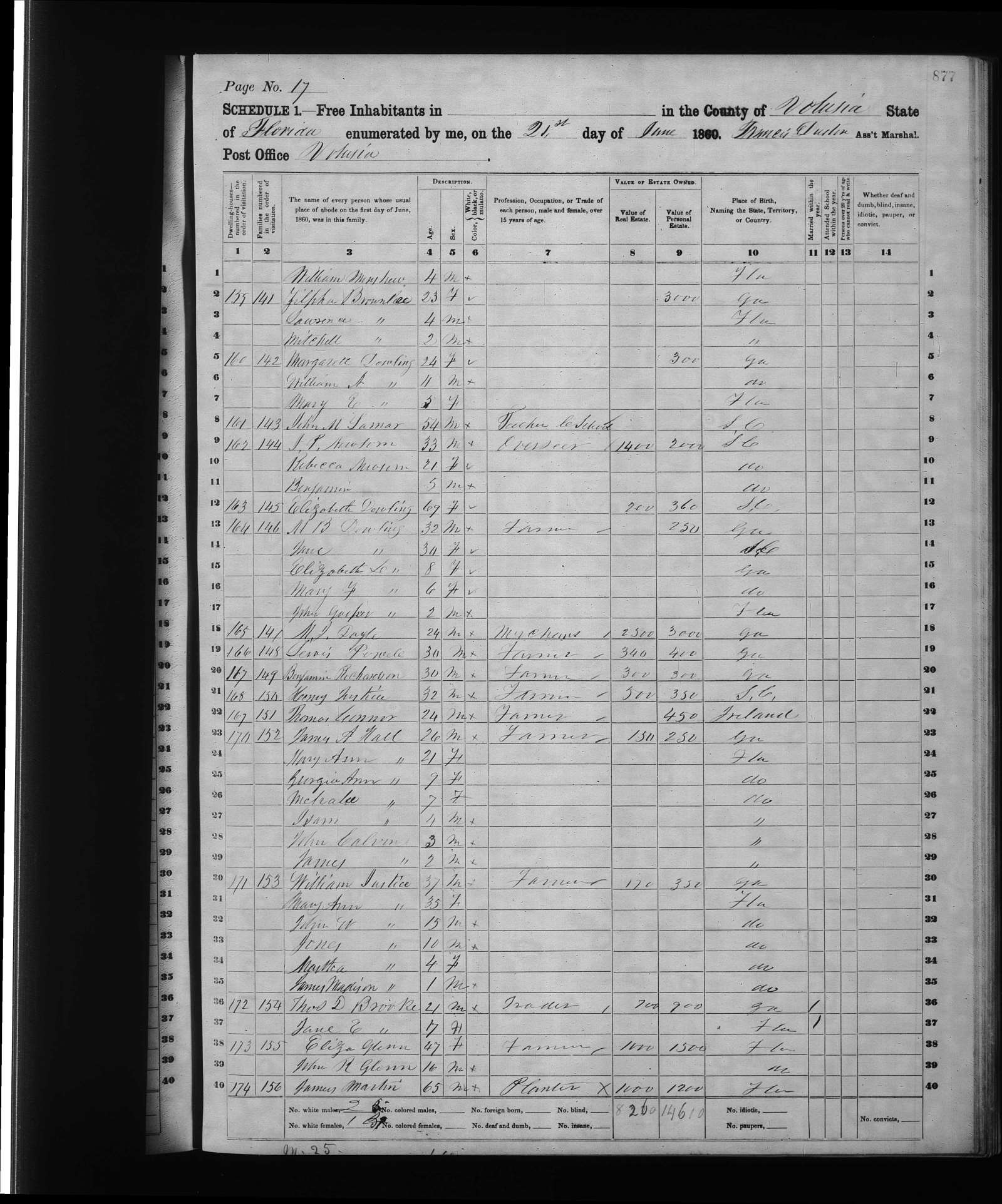 21 June 1860 | Volusia, Florida, USAG Farmer.