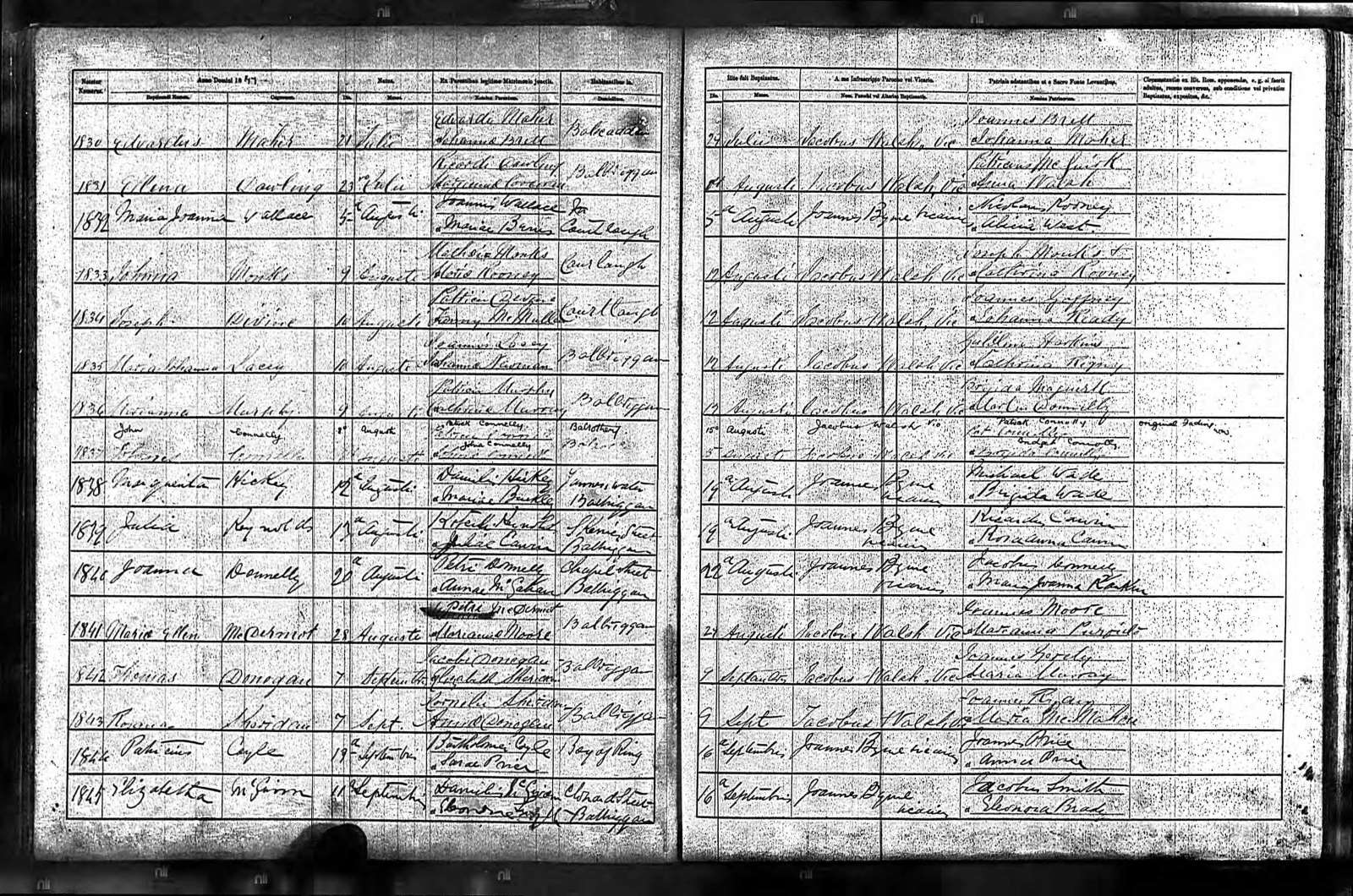 Citation Detail: Catholic Parish Registers, The National Library of Ireland; Dublin, Ireland; Microfilm Number: Microfilm 09209 / 07,