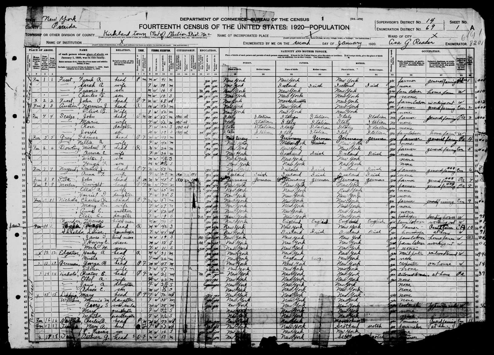 2 January 1920 | Ilion, Herkimer, New York, USAG Enumerated on the census as Age: 22; Marital Status: Unmarried; Relation to Head: Daughter.