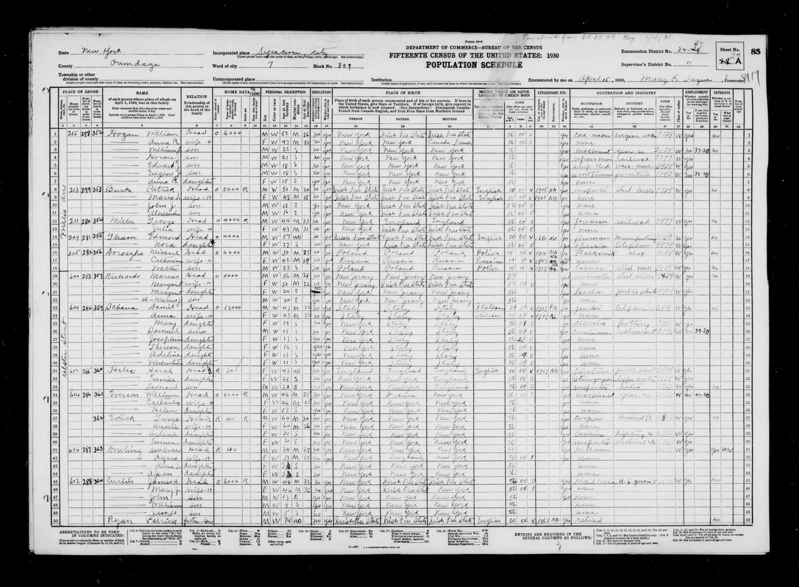 Citation Detail: Year: 1930; Census Place: Sherrill, Oneida, New York; Roll: 1623; Page: 9A; Enumeration District: 0156; Image: 486.0; FHL microfilm: 2341357,