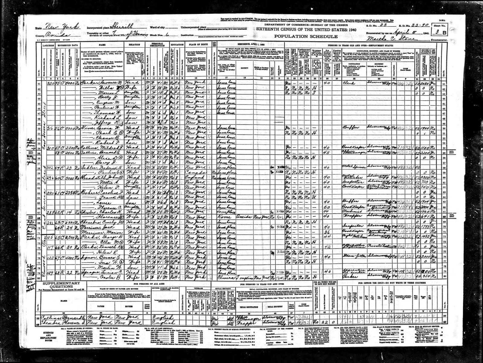1 April 1940 | Sherrill, Oneida, New York, USAG Detail: Age: 37; Marital Status: Married; Relation to Head: Head.
