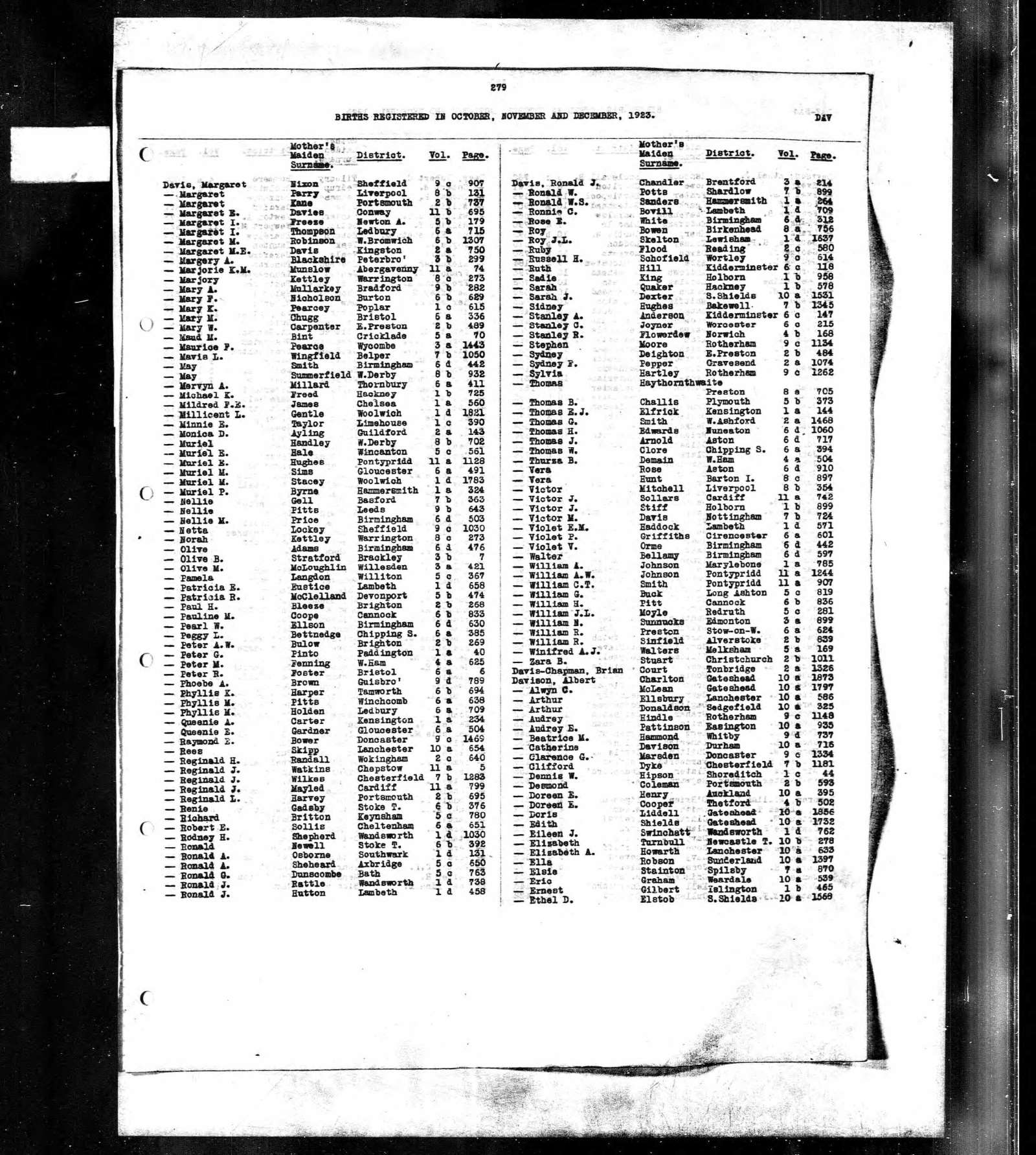| Birth | He was born on 1 October 1923 in Aston, Birmingham, Warwickshire, West Midlands, England. Note: Aston - 1923 Oct-Dec Index: Volume 6d Page 717.2,3,1 |
