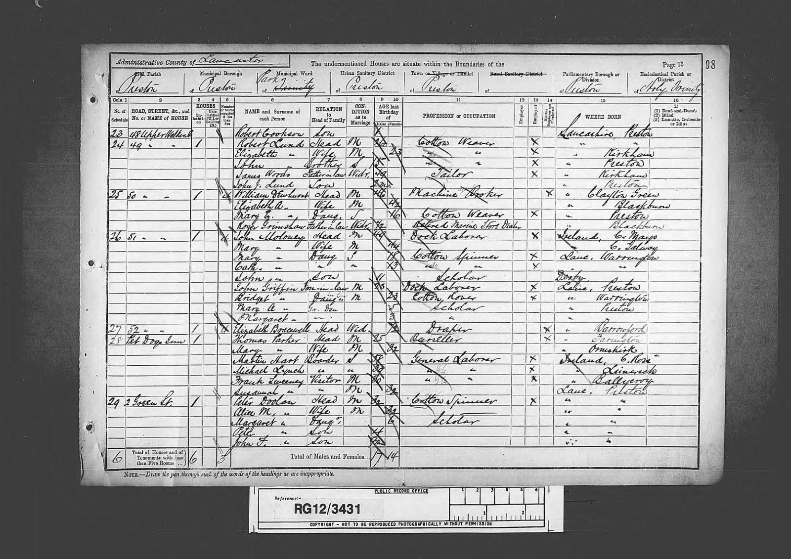 3 April 1881 | Preston, Lancashire, EnglandG Cotton Weaver.