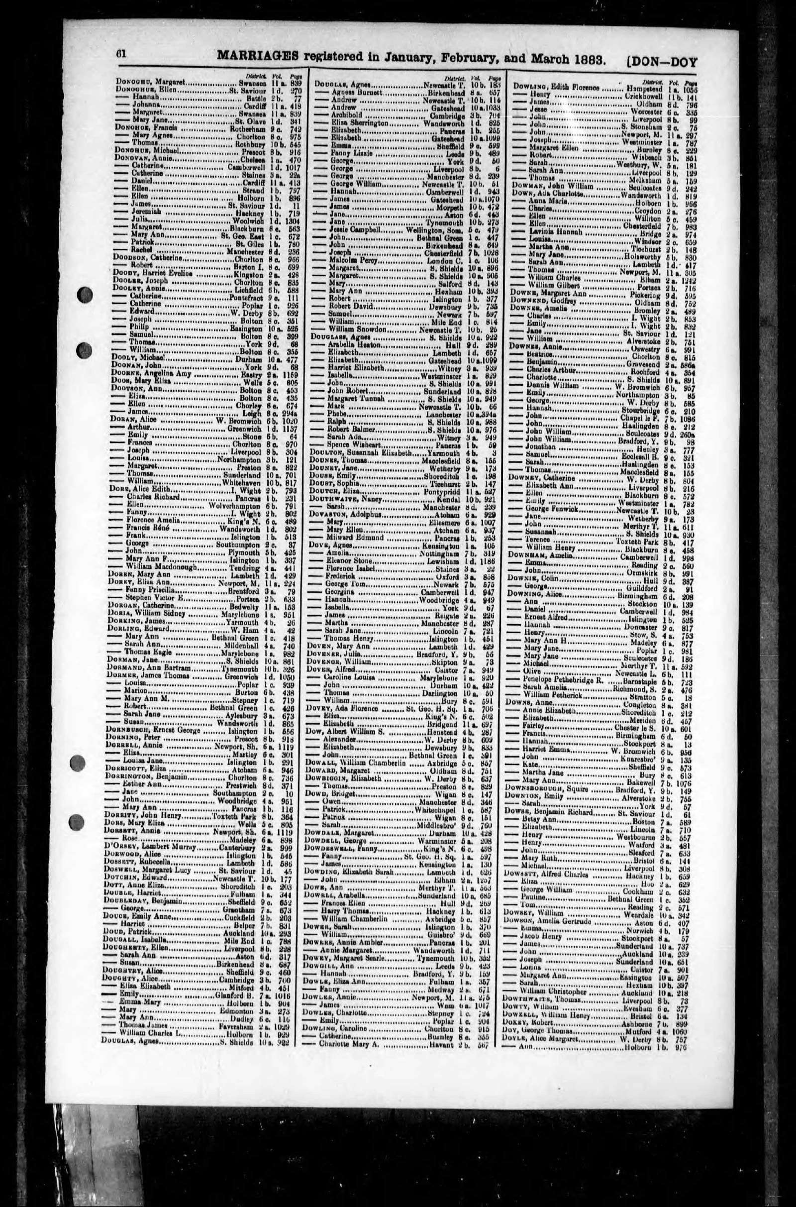 Joseph Dowling were married between January and March 1883 in Westminster, London, England