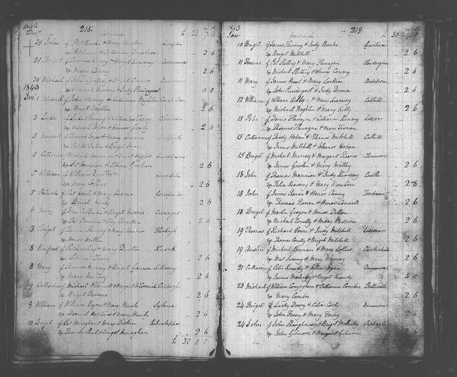 30 December 1844 | Dunmore, Tuam, Galway, Ireland
