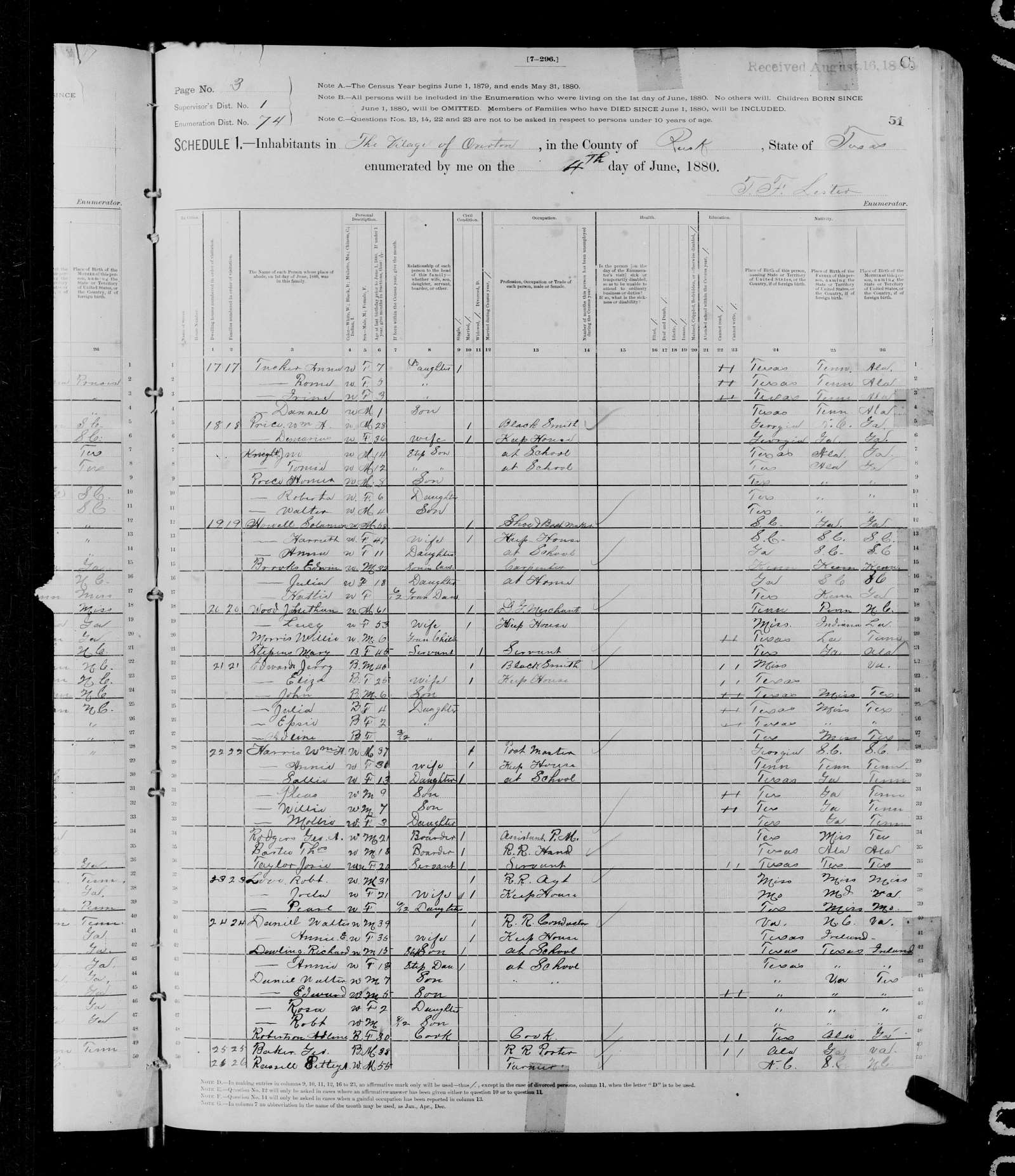 4 June 1880 | Overton, Rusk, Texas, USAG Enumerated on the census as Age: 0; Marital Status: Unmarried; Relation to Head: Son.