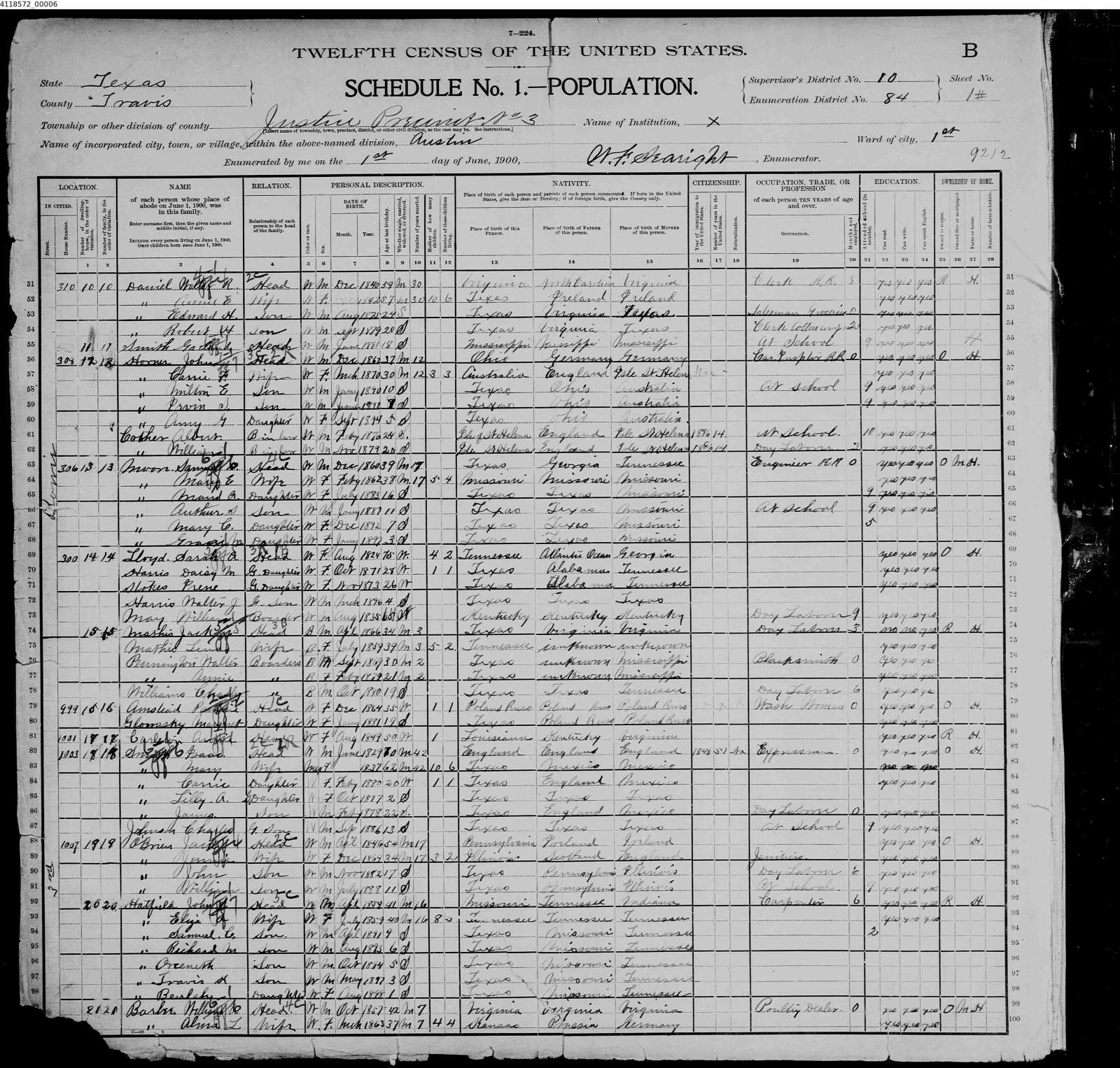 1 June 1900 | Austin, Travis, Texas, USAG Salesman of groceries.