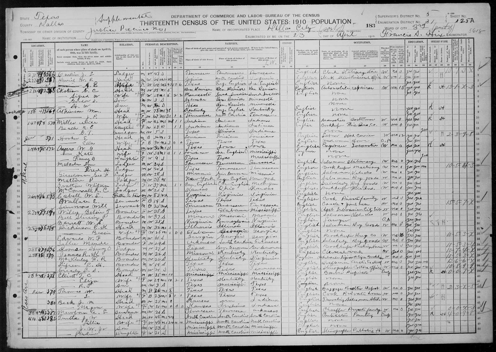 1 June 1900 | Austin, Travis, Texas, USAG Clerk at cotton company.