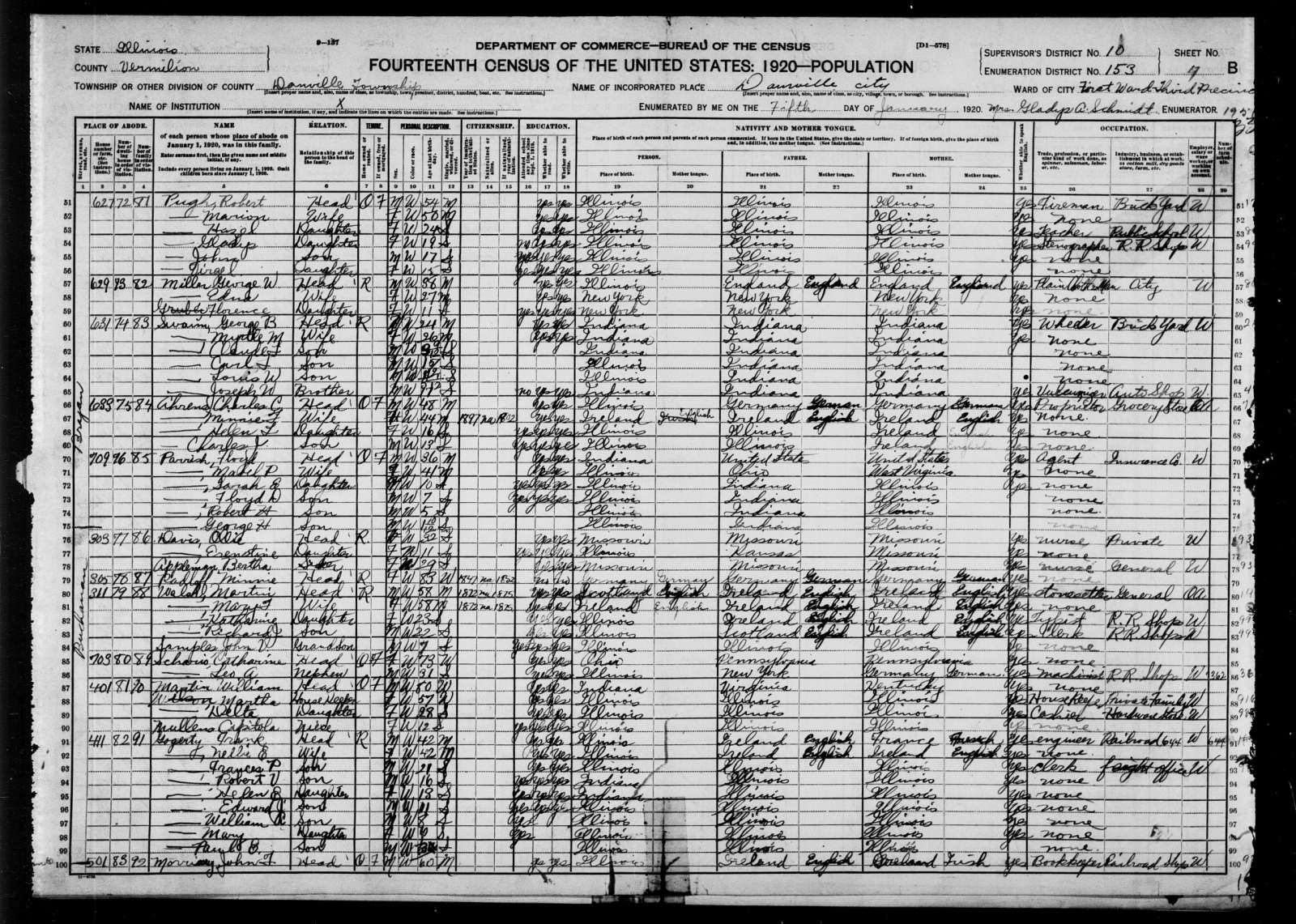 6 January 1920 | Danville, Vermilion, Illinois, USAG Enumerated on the census as Age: 20; Marital Status: Unmarried; Relation to Head: Son.